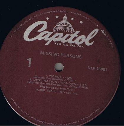 Missing Persons Capitol Records DLP-15001 (1982) LIMITED RELEASE RADIO ONLY PROMO 12" 12 inch Vinyl, 4 tracks (14:00) Electronic, New Wave, Rock, Synth-pop